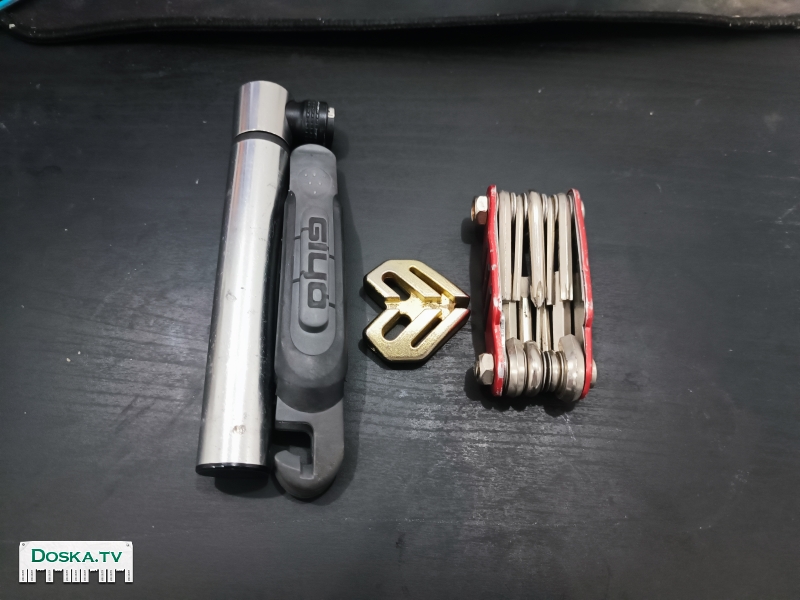 - Сумка треугольная под седло (не трясётся, влезают как-раз: камера, латки, шестигранники, монтажки, мини-насос)