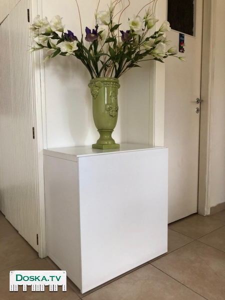 Тумба под телевизор белого цвета с маскирующим провода стеклом чёрного цвета и две боковые тумбы с внутренними полками белого цвета в отличном состоянии за 600шек. вместо 2200 шек. в магазине.