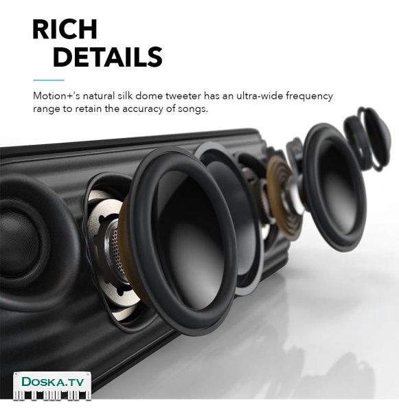 Сверхвысокочастотные динамики Motion + с двумя 40 кГц, неодимовые низкочастотные и пассивные радиаторы производят