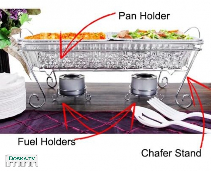 Описание Новая декоративная подставка из хрома для горячего. Под неё ставят свечи, чтоб блюдо не остывало на столе.