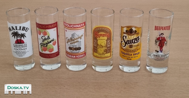 Описание 6 коллекционных рюмок и 2 пивные кружки
