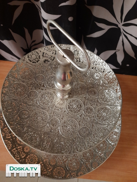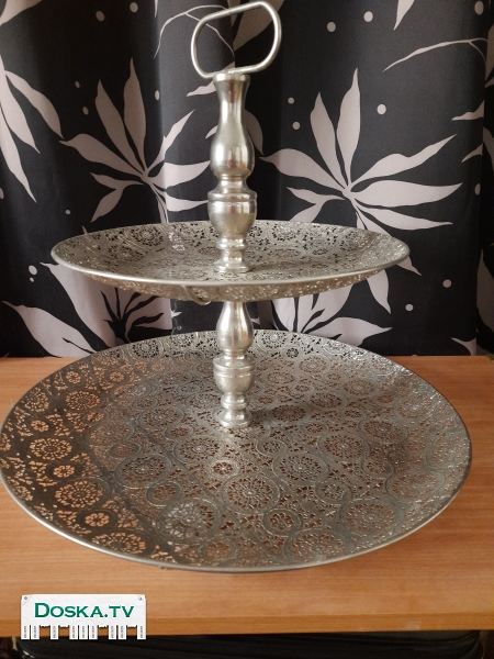 Описание Продаётся ваза двух ярусная для фруктов. Материал металл.Состояние хорошее. Размеры: верхний ярус диаметр 35 см., нижний ярус диаметр 50 см.