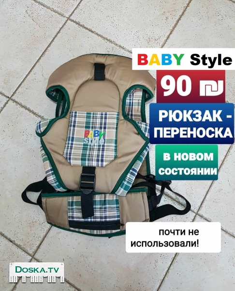 * Эргорюкзак. Кенгуру. Переноска “BABY Style”. Два положение ребенка : сидя лицом к родителю, сидя спиной к родителю. Два положения носить взрослому : на груди, на спине. Состояние : в новом, почти не использовали = 90 ש.